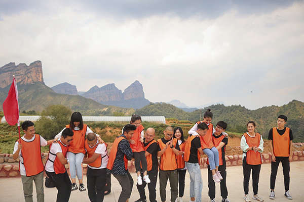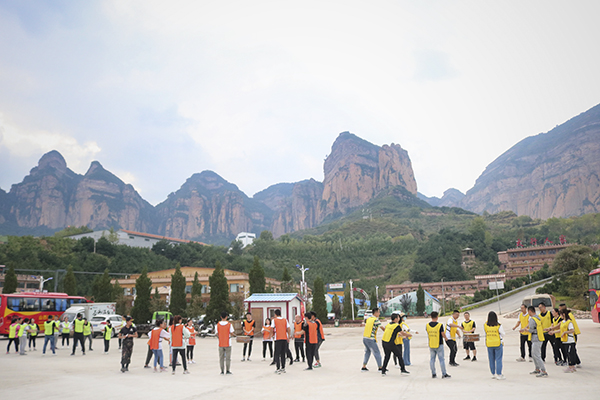 9月12日一早,我们准时乘着旅游大巴踏上了去往长治的路程,导游简单地介绍了行程安排,教官经过几个暖场小游戏后,大家状态渐入佳境,一起加入到了“起代号”的游戏中,“猛龙过江”、“大漂亮”、“容嬷嬷”、“李莫愁”、“老坛酸菜”等代号相继出炉,窗外景色怡人,车内欢歌笑语,经过3个小时的车程,我们来到了位于山西省长治市黎城县的壶山温泉度假酒店。