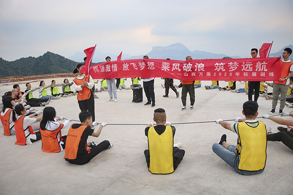到达酒店,午餐完毕后大家稍作休息,下午1点15大家准时集合,开始了为期半天的“挥洒激情,放飞梦想,乘风破浪,筑梦远航”主题团队拓展训练。
