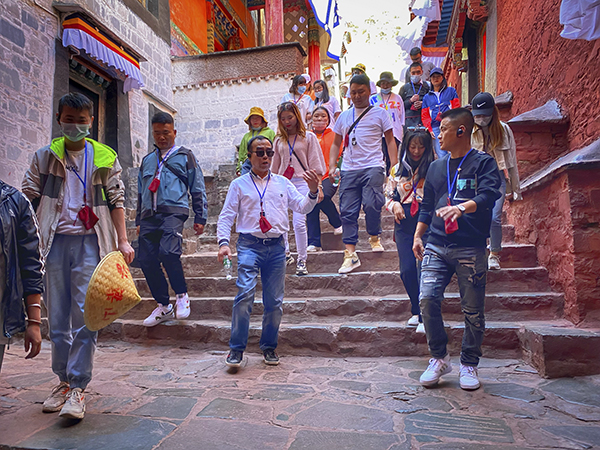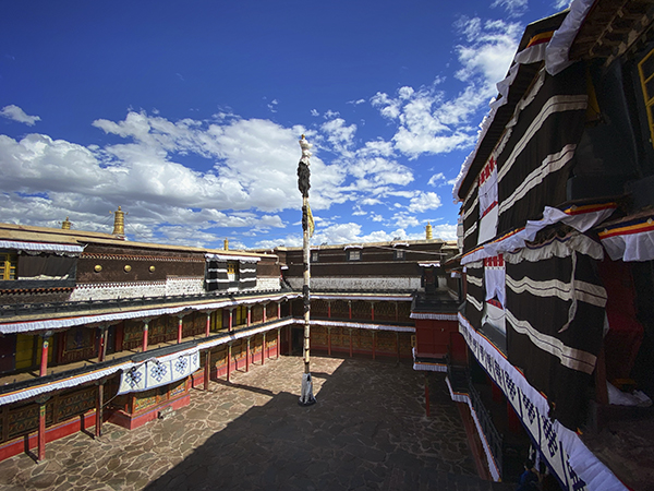 四小时车程我们到达了日喀则,午饭后,我们在韩总的带领下前往“扎什伦布寺”进行游览。“扎什伦布寺”为班禅大师驻锡地,是后藏地区最大的寺院,同时也是藏传佛教格鲁派“四大寺院”之一。在藏族导游“引经据典,深入浅出”地讲解下,我们领略了深邃的佛教文化,被藏族信众真挚热烈地虔诚而感动。公司同事们也虔诚地许下愿望,祈愿我们的明天更美好。