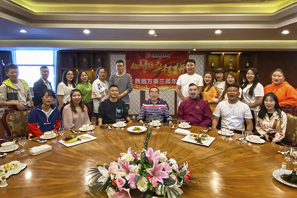 晚19时08分,西藏万乘成立三周年庆典在日喀则市乔穆朗宗大酒店盛大举行。公司小伙伴欢聚一堂,欢声笑语,喜气洋洋。面对20张青春笑脸,韩总裁发表了激动人心的讲话。韩总表示,西藏万乘成立三年以来,一步一个脚印,合作伙伴不断增加,团队不断壮大。让万乘的旗帜高高飘扬在雪域高原。韩总真情地讲,虽然西藏位于祖国边陲,但韩总时刻挂念着西藏万乘和西藏万乘的小伙伴们。韩总冀望西藏万乘,在现有业绩的基础上,决战决胜今年后三个月,努力拼搏,为万乘基业长青添砖加瓦。