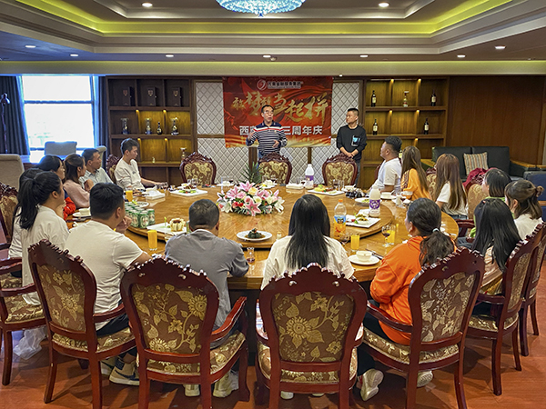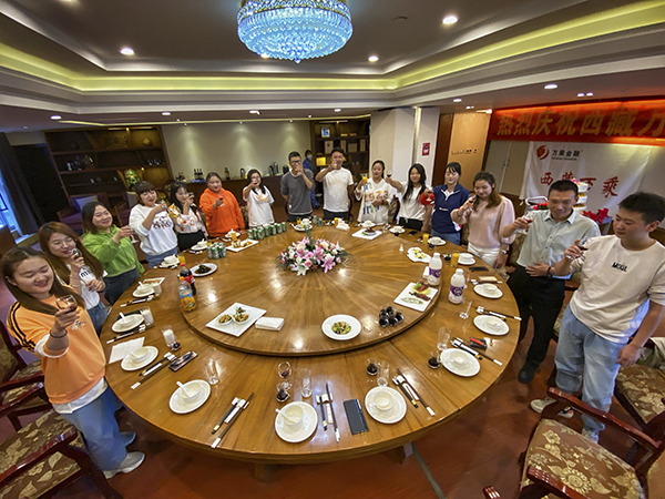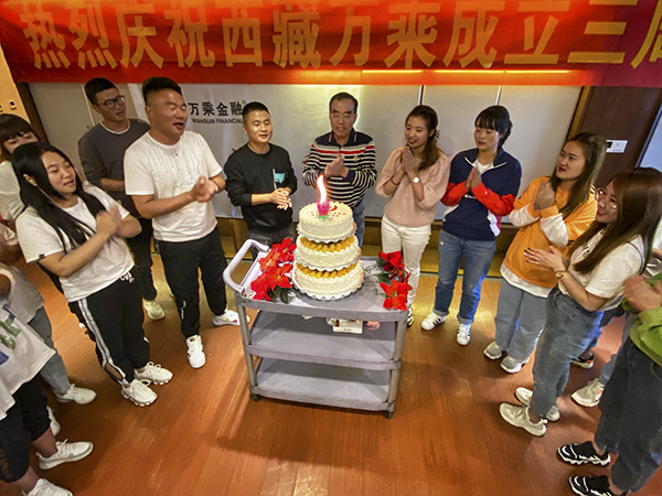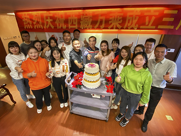 随后,韩总带领王总及业务部鲁主管共同举杯,与全体员工一起,共祝西藏万乘3周岁生日快乐,祝西藏万乘财源滚滚、业绩长虹。