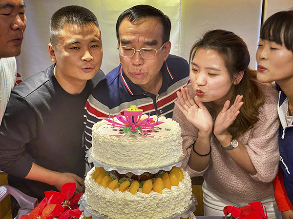 19时30分,生日蛋糕缓缓推出,韩总、王总与公司员工一起,共同点燃生日蜡烛,唱生日歌,许心愿,吹蜡烛,切蛋糕。为西藏万乘献上最真挚的祝福。