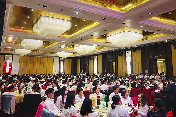 面对着500多张青春的笑脸,韩总裁发表了热情洋溢的讲话。韩总指出,去年下半年以来,北京公司的发展进入快车道,呼叫业务、信用卡业务和互金业务三驾马车齐头并进,去年第四季度月度佣金收入连续突破400万元和500万元,为2019年画上了一个圆满的句号。今年3月份全面复工复产后,广大员工克服疫情带来的种种困难,迸发出空前的工作热情和高昂的斗志,业绩一路飙升,8月份佣金收入621万元,9月份佣金收入634万元,连续两个月佣金收入突破600万元大关,进入集团的“六百万俱乐部”,可喜可贺。韩总裁亲切勉励大家,抓住疫情后业务量快速增长的有利时机,增员增效,力争在年底前踏平佣金收入700万元的关隘,让2020年完美收官。