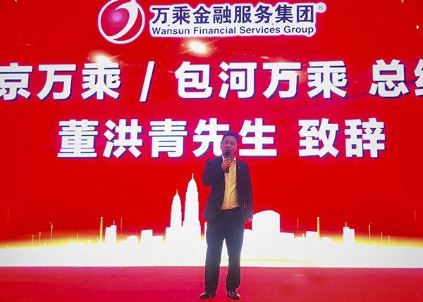 北京万乘总经理董洪青代表全体员工郑重表态:成绩已属于过去,将以本次“总裁荣誉宴”为动力和新的起点,按照总裁室下达的新指令,全力冲击佣金收入700万元的新目标,使命必达,决不掉链子!