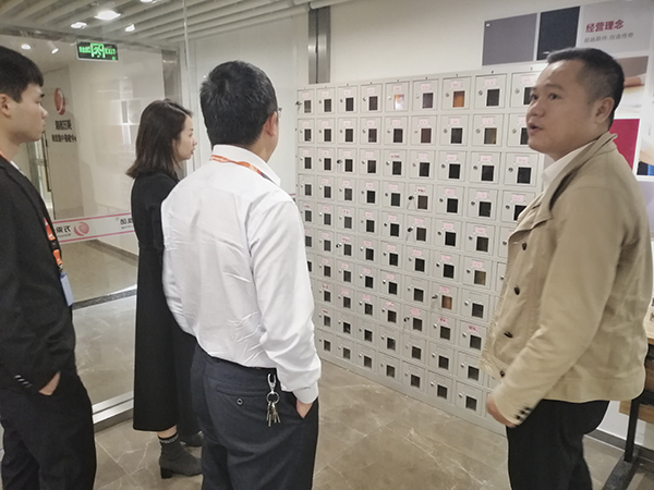 首先黎总介绍了公司发展过程、现有合作情况以及项目作业人员安排情况,随后陪同农行领导深入作业区域、手机柜、监控等区域进行现场了解及检查,领导对我司的规范严格管理给予了高度肯定。