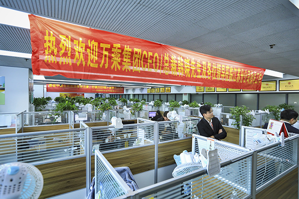 11月3日下午4时许,专程赶赴南京的万乘金融服务集团创始人/CEO/总裁韩晓先生来到南京市珠江路新世纪中心大厦7层职场,亲切看望和慰问战斗在第一线的江苏分公司和扬州办事处的全体员工,并与大家交流互动。