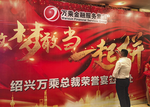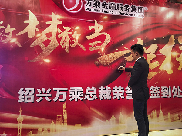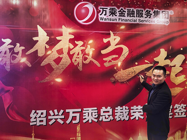 韩总裁发表了热情洋溢的讲话。韩总裁指出,绍兴公司在6月份佣金收入首次突破200万元并喜迎“总裁荣誉宴”后,不懈怠,不松劲,快马加鞭,大干快上,又连续两个月佣金收入突破300万元大关,10月份更是创出了350万元的历史新高,梦想成真,践行了万乘的创业文化。这也充分说明,只要敢拚敢打,所有的梦想都会开花。韩总裁亲切勉励大家,青春正当时,莫负好时光,绍兴分公司的下一个目标是:全力冲刺400万元佣金收入,为万乘的宏图大业建功立业。