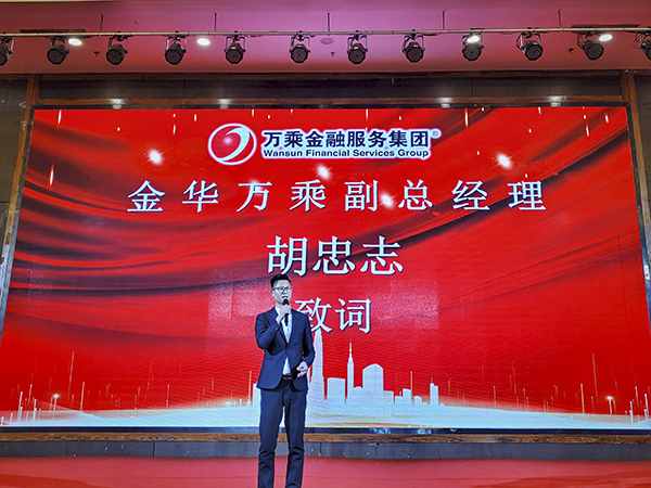 金华万乘副总经理胡忠志代表全体员工郑重表态:无奋斗,不青春。感谢集团总裁室给予金华分公司的至高荣誉,决不辜负集团总裁室的殷切期望,秣马厉兵,乘势而上,尽快拿下600万这个新目标,进入集团的“六百万俱乐部”。