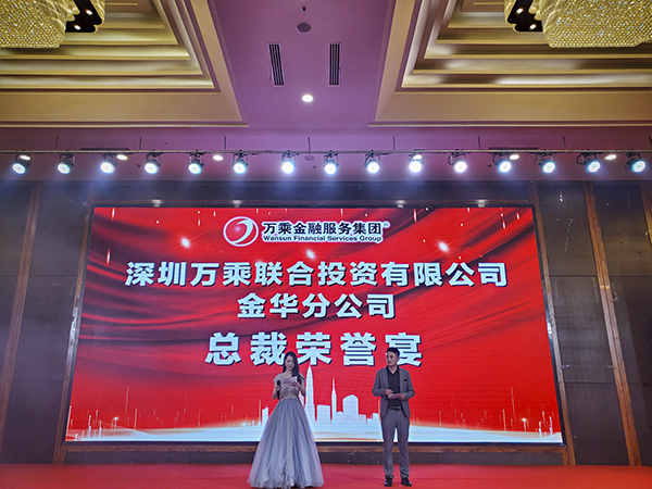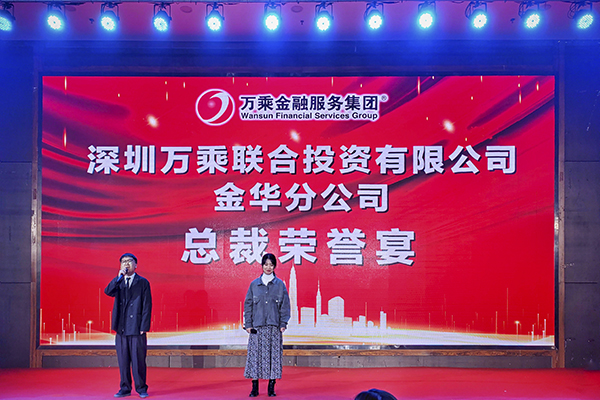 表彰大会结束后,韩总、周总、胡总走上舞台,向全体员工敬酒,感谢他们一年来的辛苦和付出,祝金华万乘财源滚滚,业绩长虹。