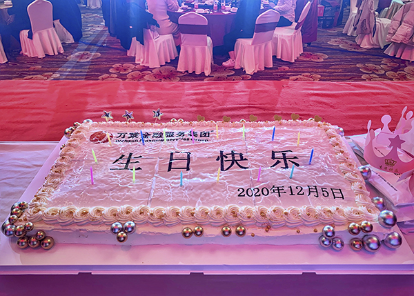 8时零8分,摇曳着烛光的蛋糕车推到舞台中央,23名11月份生日的小伙伴们在舞台上列队,逐一接受韩总裁、周副总裁、胡忠志总的生日祝福,并与三位领导一起许愿、唱生日歌、吹蜡烛、切蛋糕,晚宴的气氛被推上了高潮!