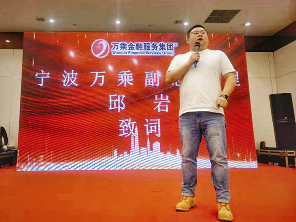 宁波万乘副总经理邱岩代表兄弟公司发表祝贺感言,祝贺温州公司全体员工新春快乐,牛年大发!