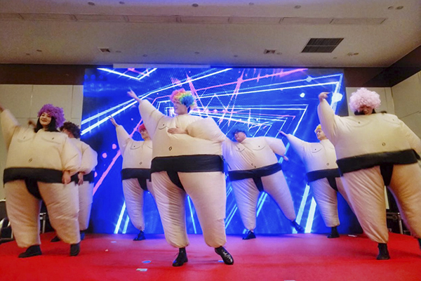 全体员工沉浸在欢乐的宴会中,共同享受盛宴。在建行组一支热情奔放、性感妖 娆的舞姿,晚会缓缓拉开了帷幕,歌曲、舞蹈、小品、京剧、魔术等多种表演形式悉数登场,可谓好戏连台,群“演”荟萃。特别是《说唱脸谱》更是掀起了年会的高潮,扎实的唱功,铿锵有力的歌喉,在每一个万乘人的心目中留下了浓墨重彩的一笔,同时也充分展现了,万乘人坚定信念、奋勇前行,不忘初心、牢记使命的宗旨。