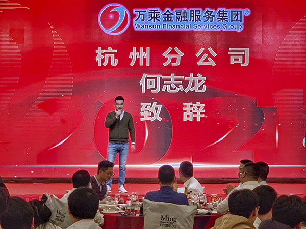 集团副总裁/浙江大区总经理/蚂蚁科技业务管理部总经理周卫平首先向宁波万乘全体员工致以新年贺词,并表达了对宁波万乘员工的深切关怀以及对分公司未来发展的殷切期望。回顾宁波万乘的发展历程,周总对于宁波万乘2020年所取得的成绩给予了高度的评价。并要求在2021年,宁波万乘业绩攀升,人员翻一番。