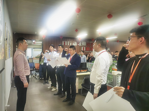 三、会议第三项内容:签军令状。李总提出了福州公司2021年的工作重心要认清形势、抓住机遇,继续扩充队伍、提升战力、顺势而上,深耕现有项目、引进新项目,继续发扬拼搏进取、团结奋进的精神,做大做强各项业务。各部门负责人也带领各部门员工向李总宣誓2021年势必力争上游,不辜负集团总裁室、公司总经理室的殷切期望。