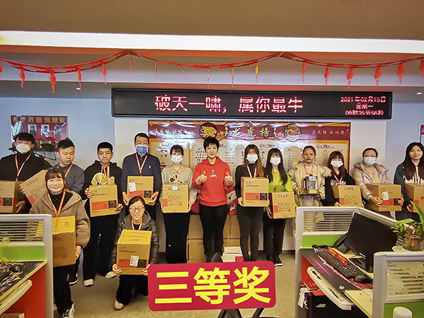 早会上举办了开工大抽奖活动,五项大奖,五十八个奖品饱含了公司对大家的心意:祝愿大家新年走旺运,身体健康,家庭和美,天天开心。