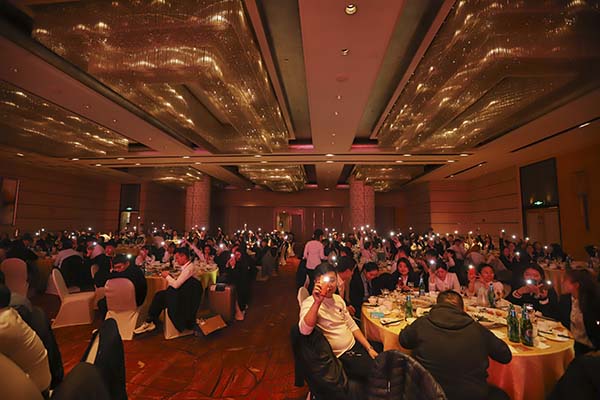 随后,在主持人的引导下,歌舞、相声、三句半等精彩的文艺演出和一轮轮的抽奖活动将晚宴不断推向高潮。