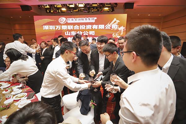 2月19日晚6时许,夕阳西下,华灯初上。位于济南泺源大街的五星酒店——索菲特银座大酒店金碧辉煌,张灯结彩,喜气洋洋。专程赶赴济南的万乘金融服务集团创始人/CEO/总裁韩晓先生筵开29席,为山东万乘在去年12月份佣金收入突破430万元庆功。