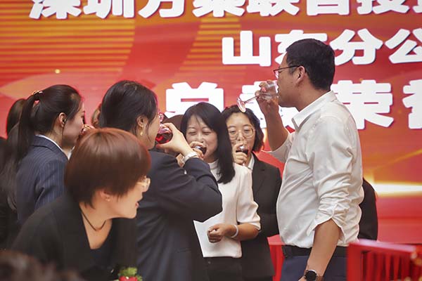 表彰大会结束后,宾主共同举杯,祝山东万乘在牛年牛气冲天,财源滚滚,业绩长虹。