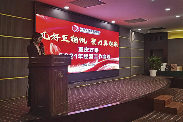 首先,重庆万乘总经理孙云传达了集团2021年经营工作会议的主要内容及集团CEO/总裁韩晓先生在2021年经营工作会议的精神,结合2020年集团各营业机构的年度数据,深度分析了重庆万乘的运营情况,并重点阐述了重庆万乘需要改进的地方,并提出了2021年工作规划及方向。
