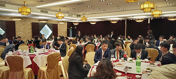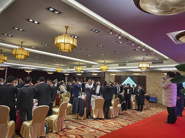 会议结束,全体员工移步宴会厅,晚宴开始,孙总代表重庆分公司敬祝酒词。