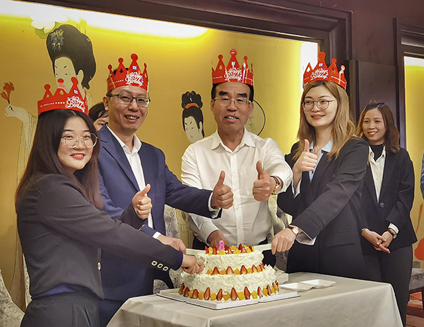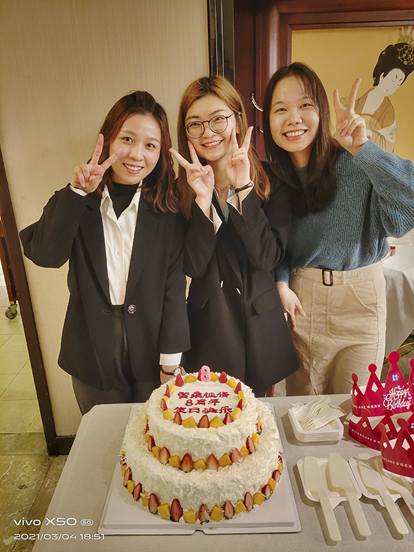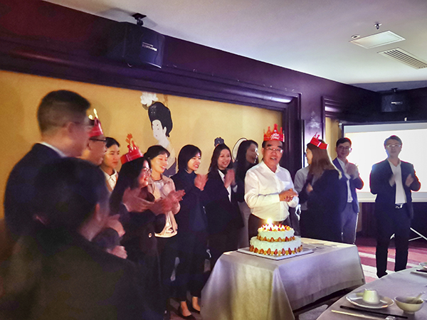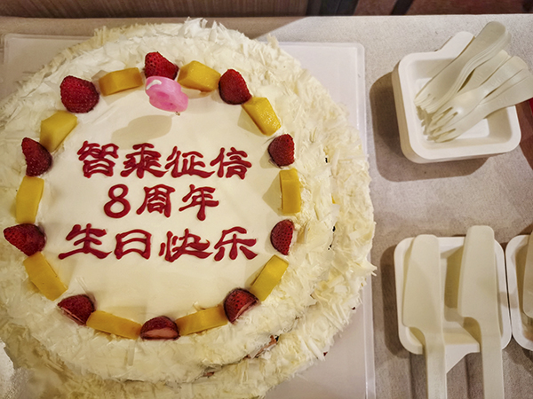 表彰会结束后,韩总裁在广州云山珠水饭庄为智乘征信公司举办庆功晚宴,同时,为智乘征信公司成立8周年庆生。