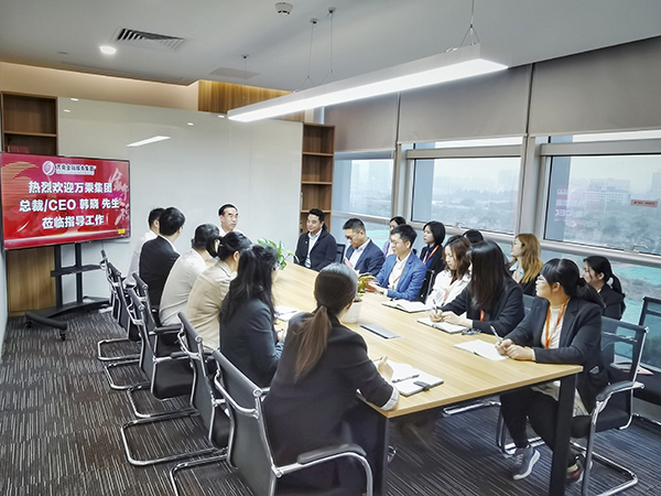2021年3月4日下午4时许,万乘金融服务集团创始人/CEO/总裁韩晓先生来到位于广州市广州大道广航大厦6层的智乘征信公司办公职场,亲切看望和慰问战斗在工作第一线的全体员工,并发表了热情洋溢的讲话。韩总裁指出,广州智乘征信公司是万乘集团旗下的全资子公司,持有央行颁发的企业征信牌照和国家统计局颁发的涉外业务调查许可证,肩负着万乘集团的战略重任。成立8年来,白手起家,从小到大,奋勇拼搏,不断拓展国内外市场,规模与效益持续向好,已成为国内企业征信行业的翘楚!2020年更是战胜了新冠疫情的严峻考验,超额完成了集团总裁室下达的经营指标。今年1月份,又以220万元的佣金收入实现开门红,创出了业绩新高,值得表扬和点赞。
