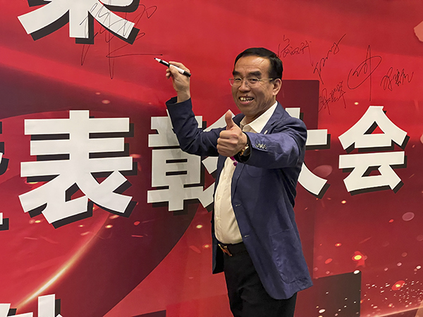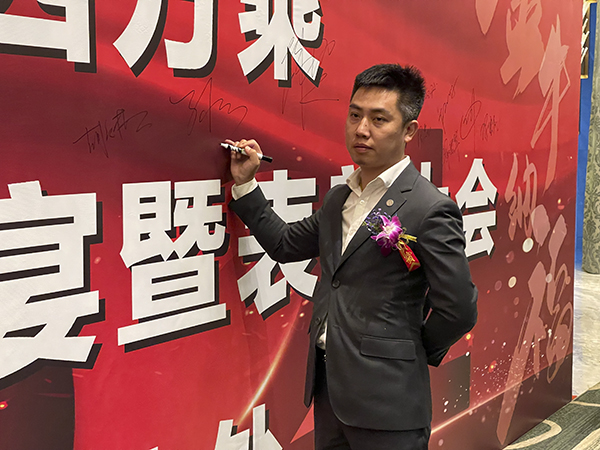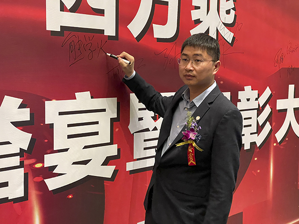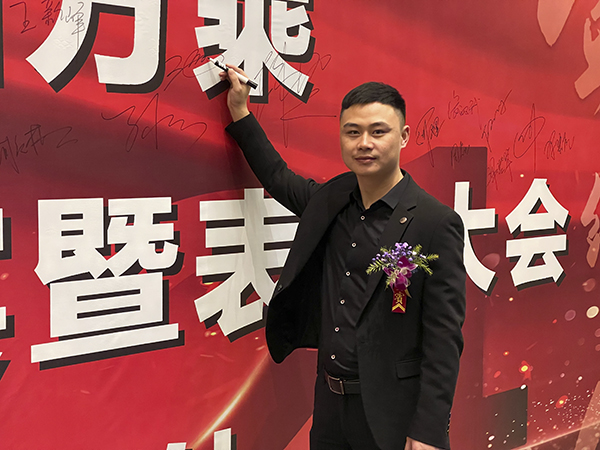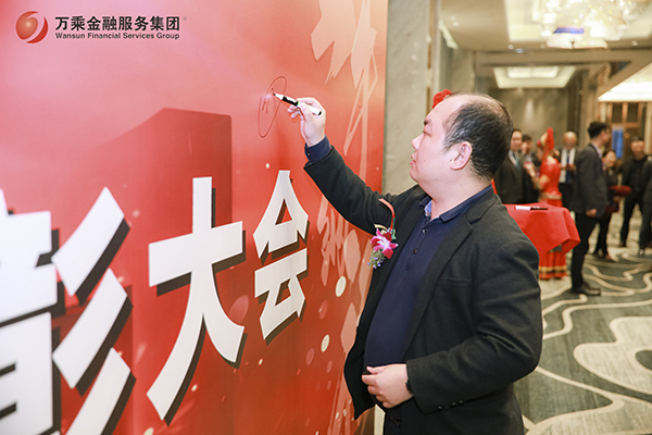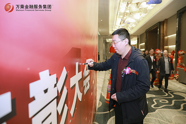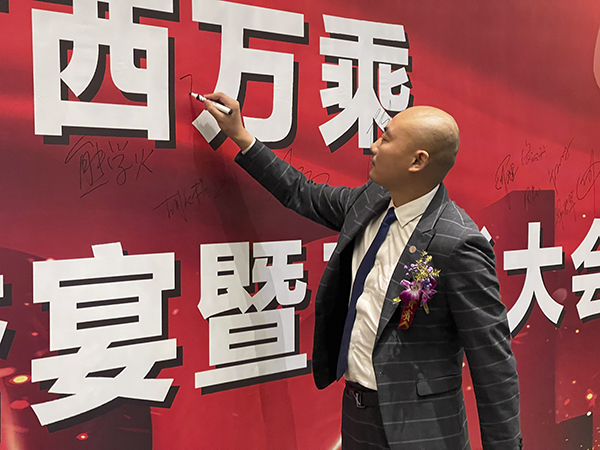 万乘广西大区总经理谭运鹏代表广西万乘全体将士郑重表态:狭路相逢勇者胜,敢于亮剑一直是广西万乘的精神和风格,有充分的信心率领广西分公司和柳州分公司的400多名子弟兵,在2021年创出亮丽的业绩,回报集团总裁室和合作伙伴的信任与重托,不负万乘不负君!