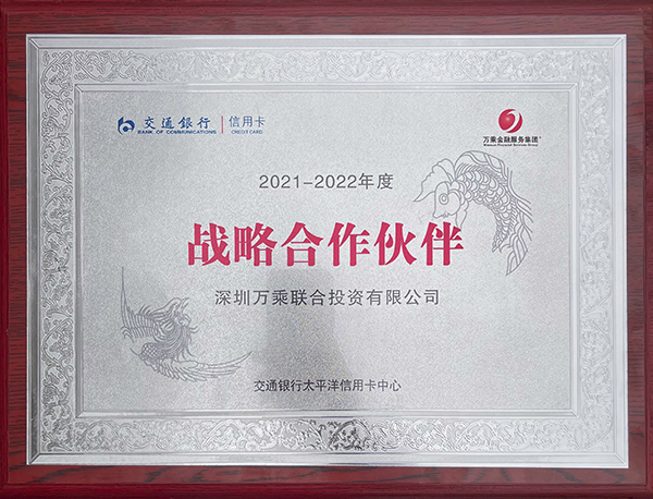 2021年3月19日,交通银行太平洋信用卡中心在上海召开“犇向新征程——2021资产质量保卫战启动会暨外包域系统全面使用推进会”,在此次会议上,万乘集团连续第二年被交通银行太平洋信用卡中心授予“战略合作伙伴”荣誉称号。万乘金融服务集团创始人/CEO/总裁韩晓先生代表万乘集团领取了这块沉甸甸的荣誉奖牌。