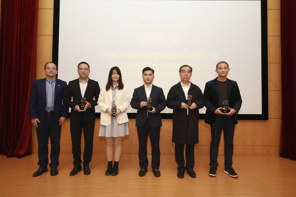 万乘集团业务督导中心总经理段学满、上海万乘总经理郭宝万、贵州万乘副总经理王新峰陪同韩总裁参加会议,并代表获奖机构领取了奖项。