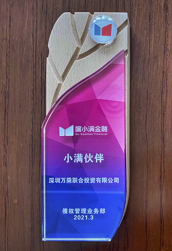 本次获奖,是我司与度小满金融自合作以来携手同行、互利共赢的最好见证!2021年,深圳万乘全体员工将会全力以赴,越战越勇,继续发扬万乘的狼性精神和拼搏精神,持之以恒,不断优化个人及团队的业务能力,以更加优异的业绩去回报度小满金融对深圳万乘的信任与重托。
