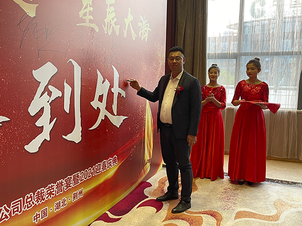 7个月前的2020年9月11日,韩总裁曾来到荆州,为月度佣金收入首次突破100万的荆州分公司举办了万乘的最高荣誉——“总裁荣誉宴”,并与全体荆州小伙伴相约:月度佣金收入突破160万元,他会再来荆州,为荆州公司庆功。