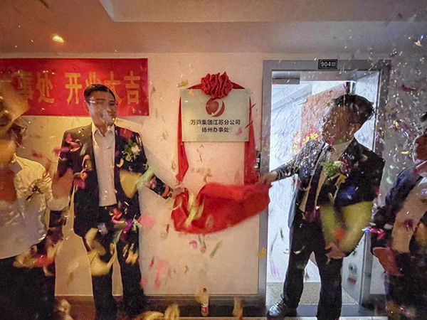 江苏万乘总经理杨仁森主持了开业典礼,并代表扬州办事处全体员工郑重表态:新职场、新希望、新征程,一定会紧随集团总裁室的脚步,努力拼搏,全力以赴,不负集团领导的期望,以优异的业绩回报集团及合作伙伴的信任和重托!