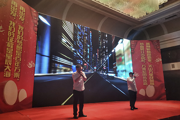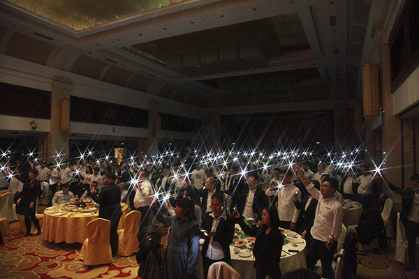 晚上6时许,夕阳收起了最后一抹霞光,五星酒店沈阳北约克维景大酒店亮起了迎客的华灯。240多名辽宁万乘员工脱下战袍,洗去征尘,欢歌笑语,喜气洋洋欢聚在酒店大宴会厅,尽享万乘荣耀时刻。