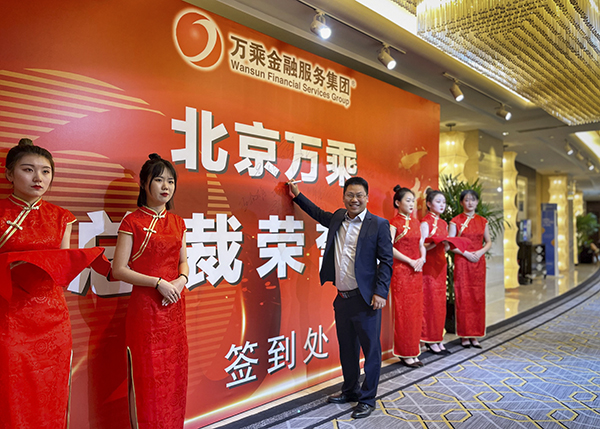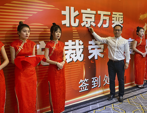 下午6时许,夕阳西下,夜幕降临,华灯初上。刚刚拍完“全家福”的小伙伴们兴高采烈、欢声笑语地荟聚到五星酒店——北京兴基铂尔曼大酒店,共享万乘荣耀时刻。韩总裁在酒店大宴会厅筵开50席,为北京万乘月度佣金收入突破700万元庆功。