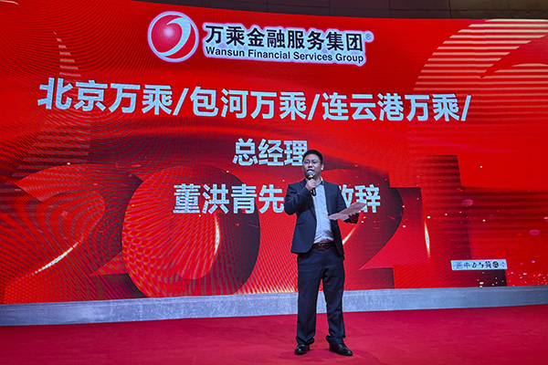 北京万乘总经理董洪青代表全体员工郑重表态:感谢集团总裁室为北京公司举办“总裁荣誉宴”,成绩已属于过去,新的奋斗目标已经确定,北京公司将整合三大业务板块,继续扩大团队规模,增员增效,全力冲击800万的业绩新高度,使命必达,为万乘基业长青作出自己的贡献!