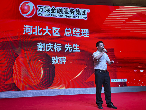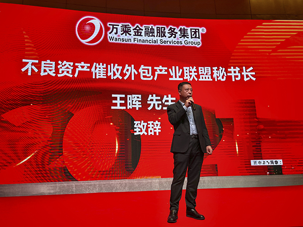 中国不良资产催收外包产业联盟秘书长王晖、万乘河北大区总经理谢庆标分别登台,并发表祝贺感言。