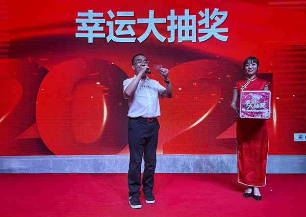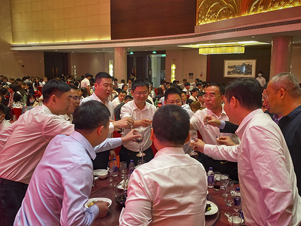 随后,韩晓总裁、董洪青总经理、北京万乘巫杨雄副总经理一起上台,向全体员工和嘉宾敬三杯酒。宾主共同举杯,祝北京万乘牛年大吉,业绩长虹,财源滚滚!