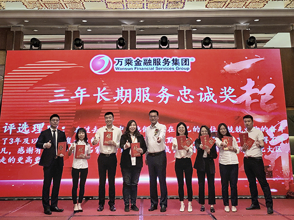 首先举行颁奖仪式。韩总裁、崔副总裁、谢庆标总、何亮总先后登台,向万乘河北大区8名入职3年以上的员工和14名入职5年以上的员工颁发“长期服务忠诚奖”,向9名员工颁发“优秀主管奖”,向5名员工颁发“优秀员工奖”和“最具潜力奖”。