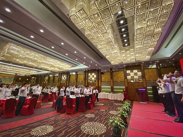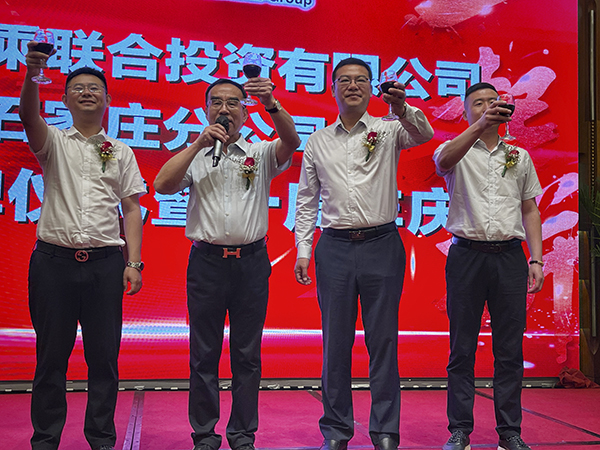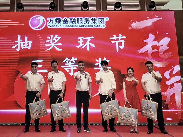 颁奖后,韩总、崔总、谢总、何总联袂上台,向全体员工、所有嘉宾敬酒。宾主共同举杯,祝石家庄万乘乔迁大吉,业绩长虹,财源滚滚。