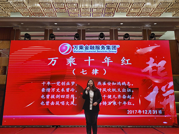 万乘河北大区总经理谢庆标代表石家庄分公司全体员工郑重表态:将借本次新职场乔迁的东风和公司成立十年红的运势,保持目前良好的发展势头,继续扩大团队规模,提高人员产能,挖掘业务潜力,将总裁室的预期指标分解并落到实处,砥砺前行,使命必达,不负青春,不负万乘!