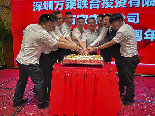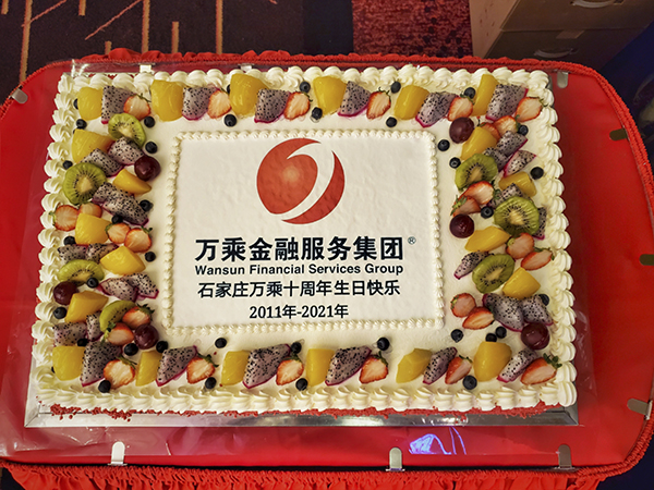 下午1时18分,蛋糕车摇曳着烛光推到了舞台中央,韩总裁、谢总、何总与5名优秀员工一起许愿,并在全体人员合唱的生日歌中吹熄蜡烛,切开蛋糕,全体人员齐声高喊:石家庄万乘十岁生日快乐!