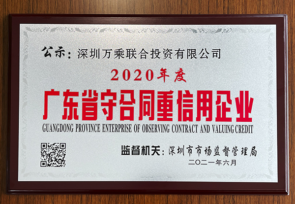 近日,深圳市市场监督管理局对2020年度“广东省守合同重信用”企业进行公示,万乘集团凭借良好的信用体系建设及诚信守约形象从众多企业中脱颖而出,荣获2020年度“广东省守合同重信用企业”称号。