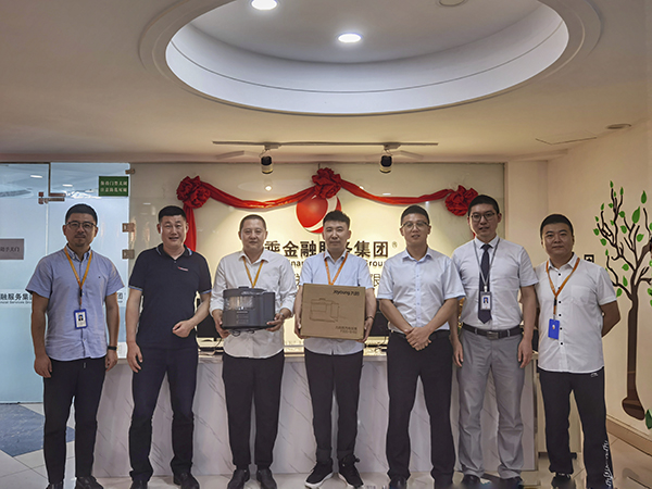 7月15日,哈尔滨银行信用卡中心哈尔滨分中心赵宇副总经理及风险室高杨经理莅临黑龙江万乘,在总经理杨宏亮及哈行组管理人员的陪同下为王雪峰、方珉颁奖。