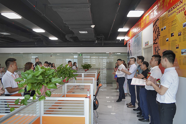 万乘广西大区总经理谭运鹏发表感言:首先祝贺桂林办事处成立,指出桂林办事处是广西大区第三个机构点,要充分发挥区位优势,用优异的成绩向集团和合作伙伴提交一份满意的答卷。