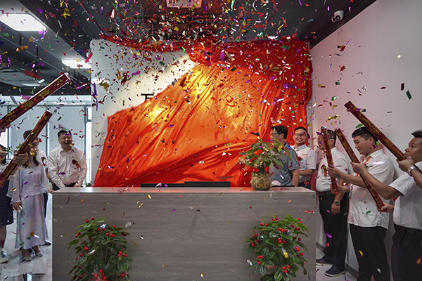 领导讲话结束后,在热烈的掌声和飘舞的礼花中,揭牌仪式正式开始。
