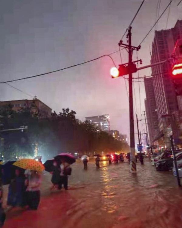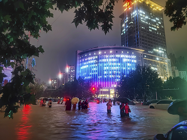 晚上十点半,河南万乘一名男员工张宁,走到未来路雨水一度漫到腰部,无法前行,就折返回离公司不远的未来路酒店大堂避雨。业务主管杜席联系该员工称酒店已满,大堂内挤满了避雨人员,已是晚上快十一点,赵总与业务主管一起步行到未来路口查看积水情况,电话引导该员工从未来路往回走,就这么不到六百米的路一眼就能看到公司大楼水却深到大腿,在引导下员工顺利返回,最后一名员工安全抵达公司宿舍。