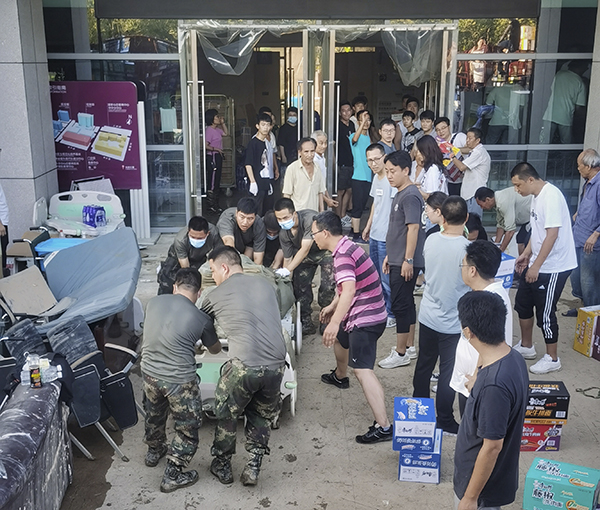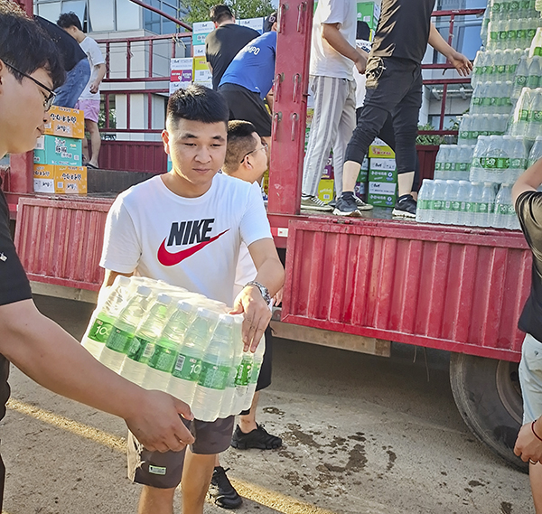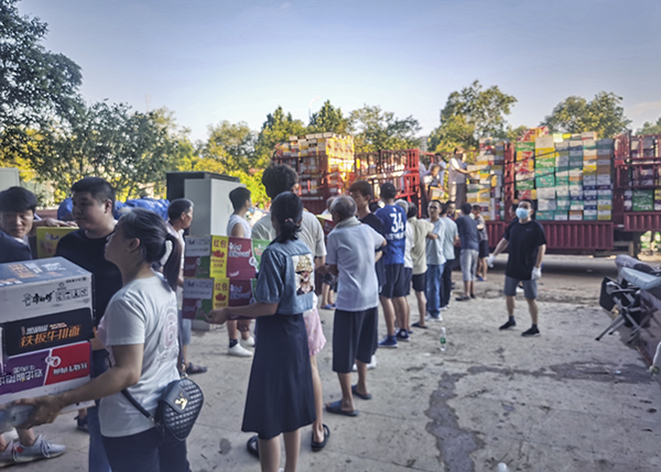 7月23日,郑州市区洪水已基本退去,水电网络已陆续恢复,但是街道上的场景令人窒息,隔离带被冲走,大面积车辆被洪水冲撞在一起,泥泞不堪的路面,这些都只是冰山一角,来自全国各地的救援物资纷纷抵达郑州,当河南万乘管理群看到赵总发来中牟县急需志愿者帮忙搬运物资的信息时,管理人员牛广辉、苏俊忠、朱玉玲、徐鑫、余海峰、吉鹏涛、韩霞,积极踊跃报名参加,特别是当天刚入职的新员工刘浦听到消息后积极报名参加,大家纷纷开来自己的车辆,出发前往离公司15公里的中牟县集结点,此次河南公司出动7台车辆共35人参加,火速赶到现场帮忙搬运物资。