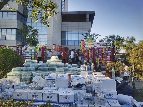 下午4点,河南万乘总经理赵鹏通知所有管理人员开会,通报了雨情和路面严重积水情况,并安排离家远的同事去公司宿舍入住,通知大家提前下班。但是看到外面下着倾盆大雨,到处一片汪洋大海,想回家的员工也打消了回家的念头。看到这一情况,公司主管徐鑫、余海峰在公司群里发送紧急信息联系协调宿舍,公司四间宿舍就在公司楼后小区,从地下室即可通往,大家纷纷赶往公司宿舍。