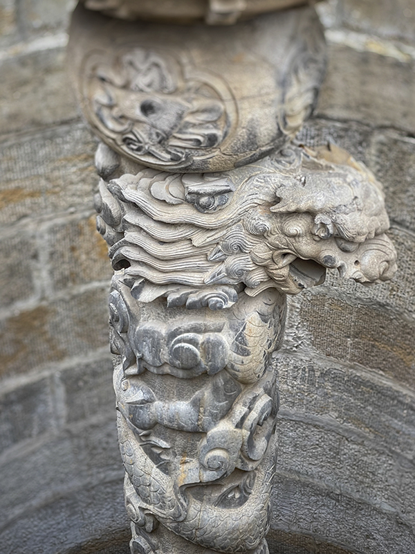 我们从显通寺出来,穿过震悟大千的劵门洞,来到普化寺。普化寺原称玉皇庙、帝释宫,现存寺庙是于民国年间重建。这里的建筑特点,一是楼廊式格局,二是装饰精细,门上券口、格下槛墙、墀头角柱石和柱础等多有汉白玉石雕,体现了民国年间的建筑风格。