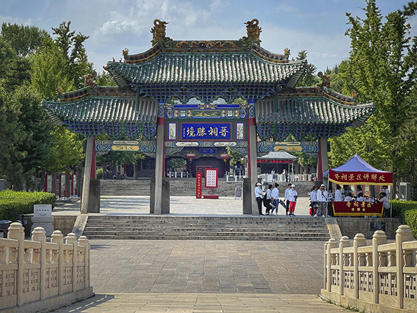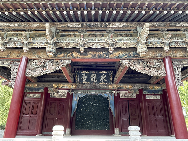 进入景区看到的第一座古建是明清时的戏台——水镜台。导游说《西游记》孙悟空战二郎神化身的庙宇就是取景于这座建筑。“水镜台”的牌匾和对越坊的“对越”、难老泉的“难老”是晋祠的三大牌匾。